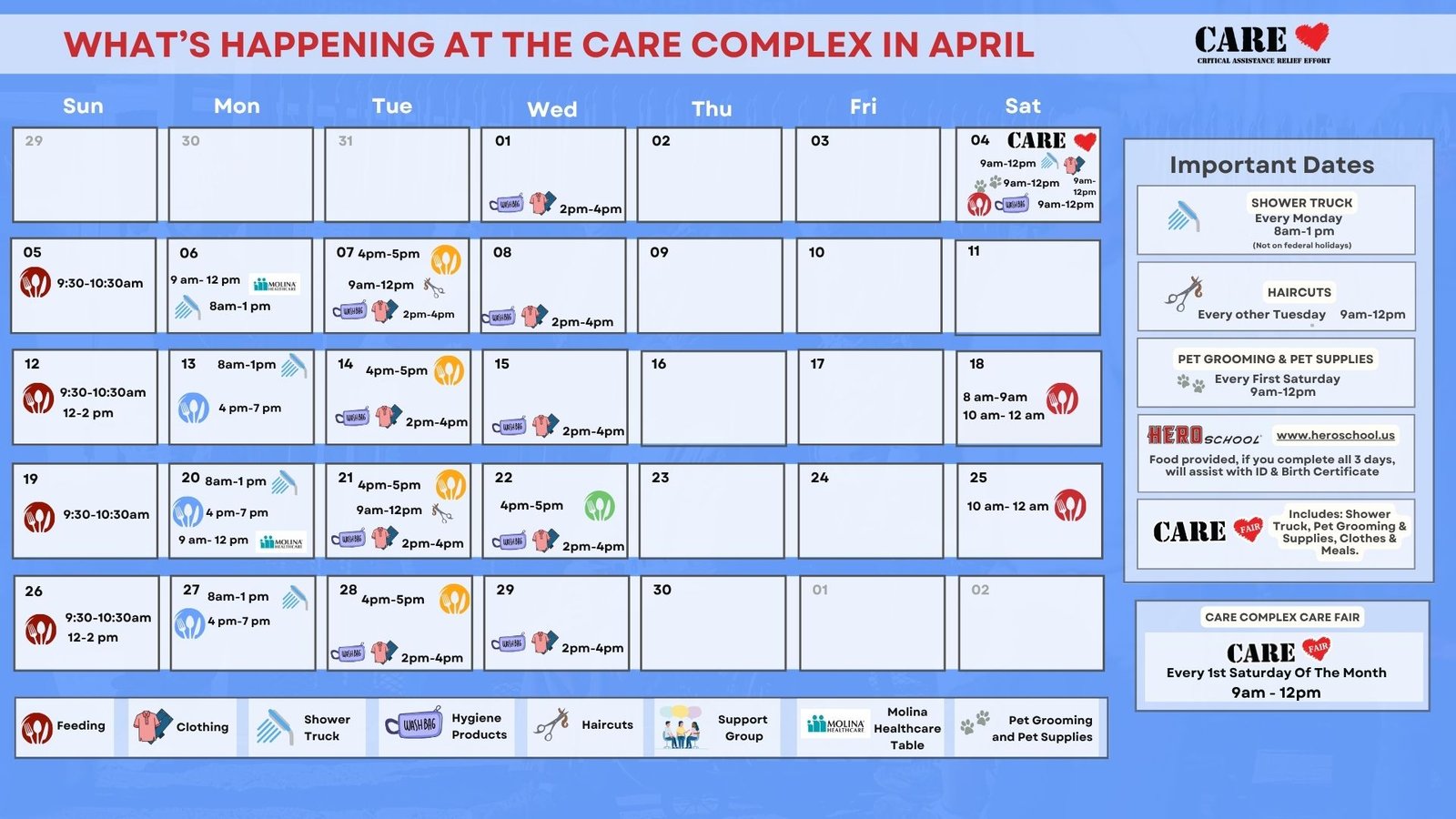 If you or someone you know is experiencing homelessness or facing challenges in accessing essential services, C.A.R.E. Complex is here to help. We provide a welcoming and supportive environment where individuals can find the resources they need to regain stability and improve their quality of life. Our dedicated staff and volunteers are committed to assisting you in your journey toward self-sufficiency.