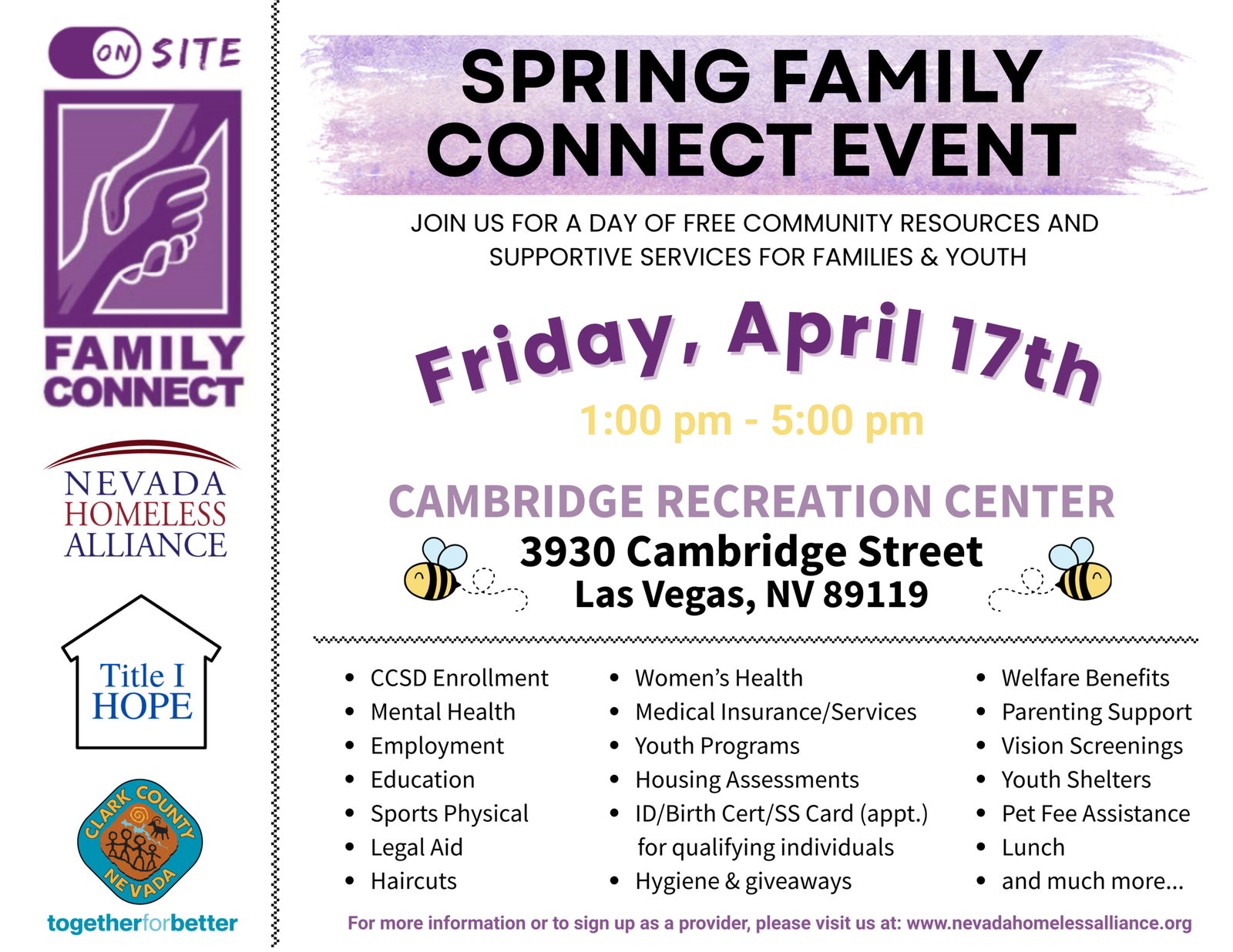 The Nevada Homeless Alliance works to end homelessness by connecting individuals and families to vital resources, including housing, healthcare, and employment support. Through initiatives like Project Homeless Connect, they foster collaboration and provide direct assistance to those in need.